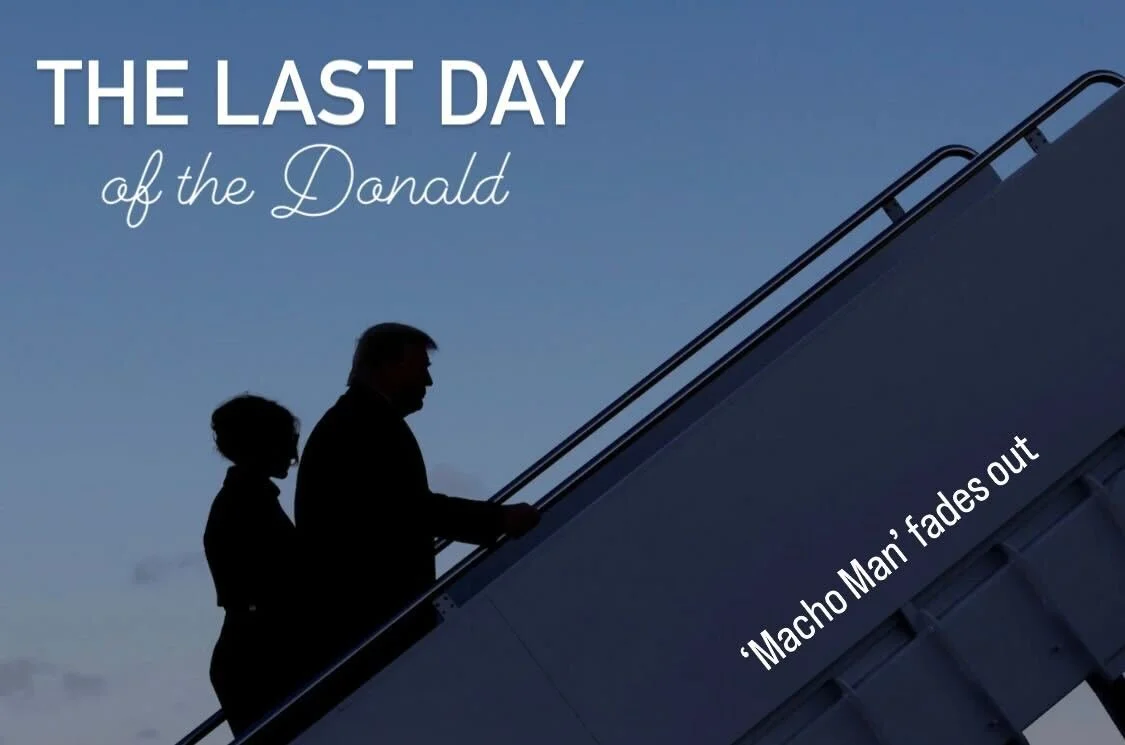 On the morning of Inauguration Day, with four hours left in Trump’s presidency, CNN’s Wolf Blitzer helpfully confirmed that “The sun is rising.” President Trump and Melania Trump emerged from the White House for the final time at 8:13 a.m. On their helicopter flight to meet Air Force One at Joint Base Andrews, they passed the Old Post Office Museum, refurbished into a Trump hotel (and a cesspool of influence-peddling) that may soon be placed on the auction block.